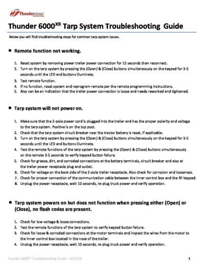 Web Page 1 Thunder 6000 Tarp System Troubleshooting Guide Solution After Above Steps Are Taken.