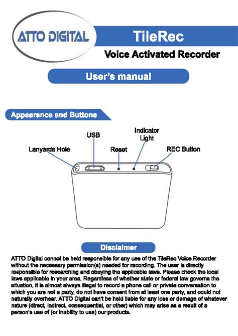 Web Page 1 Rec Button Reset Disclaimer Atto Digital Cannot Be Held Responsible For Any Use Of The Tilerec Voice Recorder Without The Necessary Permission(S) Needed For.