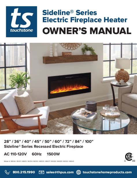 Product away, make sure this manual. Web sideline® elite series electric fireplace www.touchstonehomeproducts.com 800.215.1990 rev. 87026, 87028, 87030 87032, 87034, 87036, 87040.