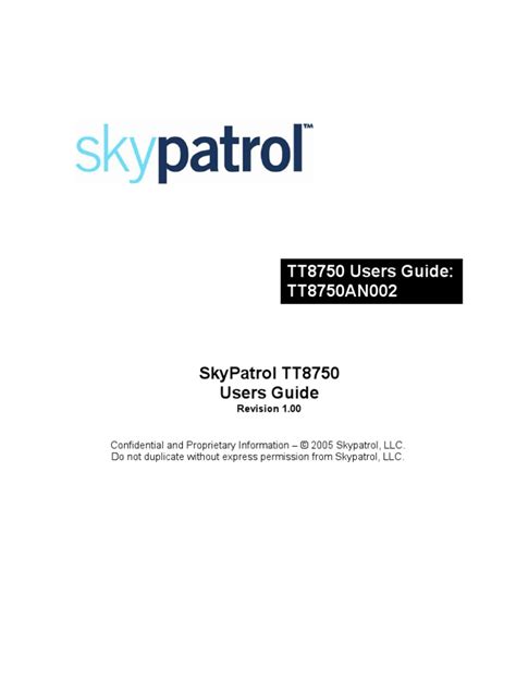 Scribd is the world's largest social reading and publishing site. Web view online or download 1 manuals for skypatrol tt8750. Skypatrol tt8750 users guiderevision 1.00 confidential and proprietary information 2005 skypatrol, llc.