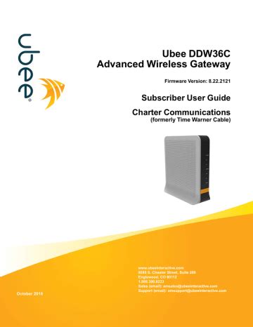 Web ubee ddw36c user manual ubee ddw36c advanced wireless gateway. 8.17.xxxx subscriber user guide cox communications. Advanced wireless gateway (3 pages) gateway ubee ddw365.
