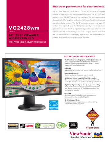 Viewsonic Vg2428Wm Led Monitor User Guide. This display is designed for both you and the planet! Home and office | va series;