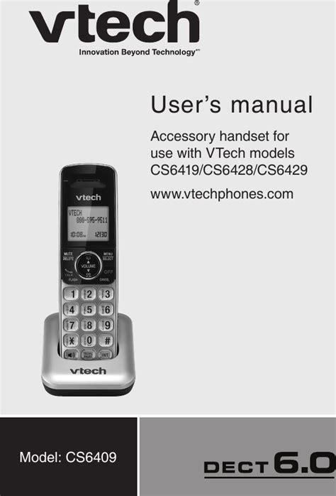 Web user’s manual accessory handset for use with vtech models cs6419/cs6428/cs6429 www.vtechphones.com model: Vtech cs6409 user guide, user manual (cs6409) must be registered with the telephone base.