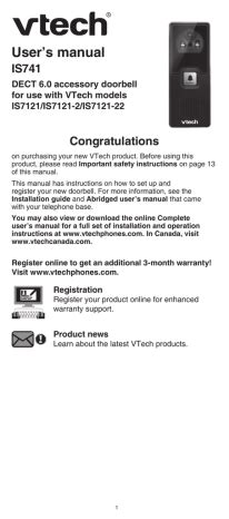 Web Dect 6.0 Cordless Telephone With Wireless Doorbell (14 Pages) Handsets Vtech Is7101 User Manual.